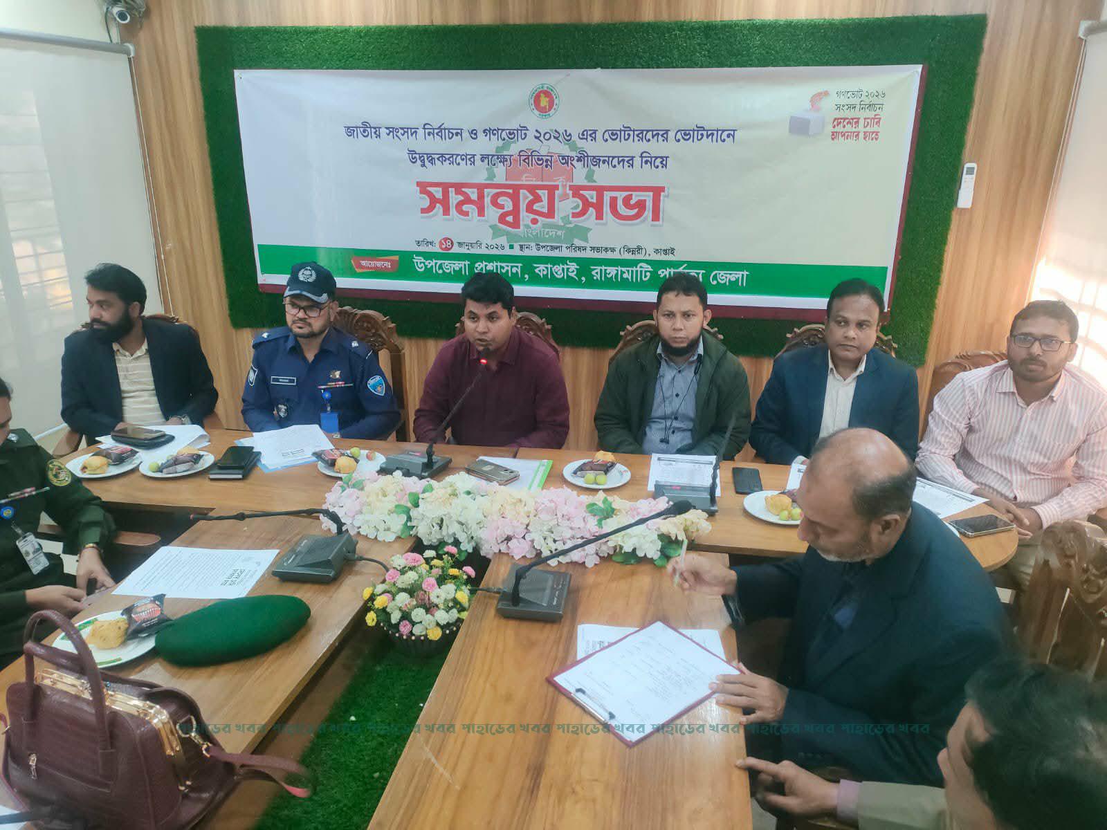 আসন্ন ত্রয়োদশ জাতীয় সংসদ নির্বাচন ও গণভোট ২০২৬ উপলক্ষে ভোটারদের ভোটদানে উদ্বুদ্ধ করার লক্ষ্যে কাপ্তাইয়ে অংশীজনদের নিয়ে এক সমন্বয় সভা অনুষ্ঠিত হয়েছে।