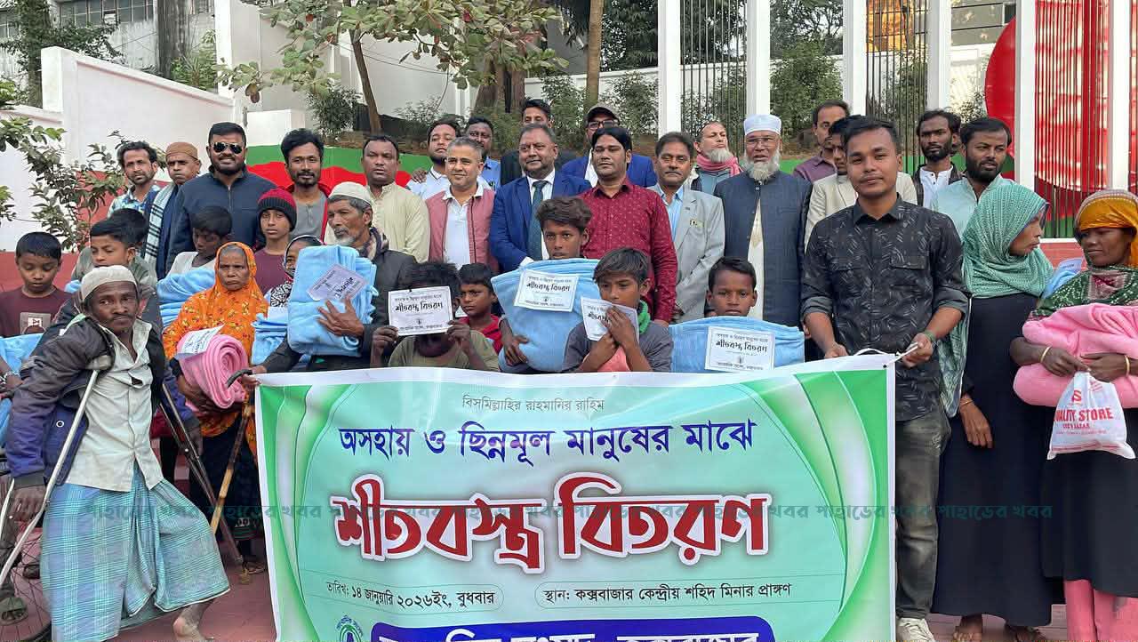 শতাধিক অসহায় ও ছিন্নমূল মানুষের মাঝে সাংবাদিক সংসদ কক্সবাজারের শীতবস্ত্র বিতরণ