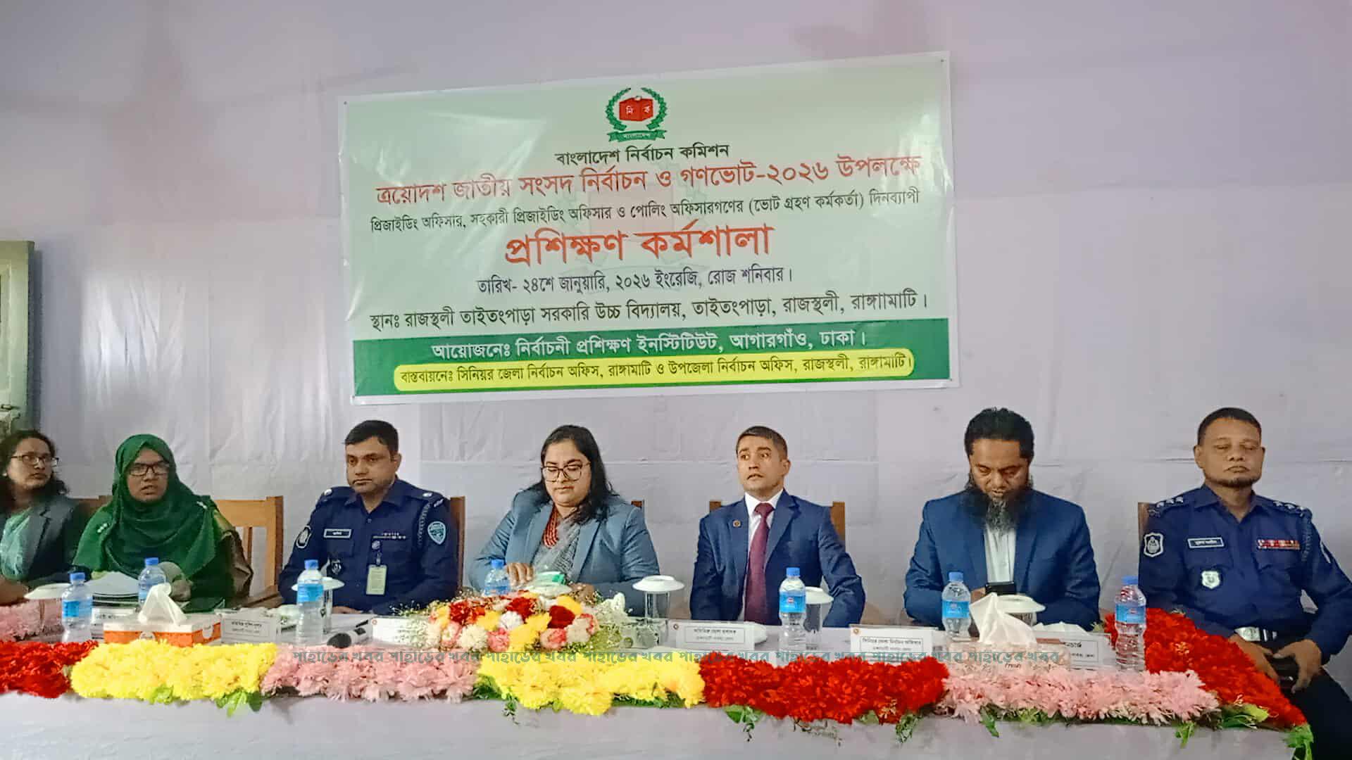 ত্রয়োদশ জাতীয় সংসদ নির্বাচন ও গণভোট অবাধ, সুষ্ঠু ও শান্তিপূর্ণভাবে সম্পন্ন করার লক্ষ্যে রাঙামাটির রাজস্থলী উপজেলায় প্রিজাইডিং অফিসার, সহকারী প্রিজাইডিং অফিসার ও পোলিং অফিসারদের (ভোটগ্রহণ কর্মকর্তা) জন্য দিনব্যাপী প্রশিক্ষণ কর্মশালা অনুষ্ঠিত হয়েছে।