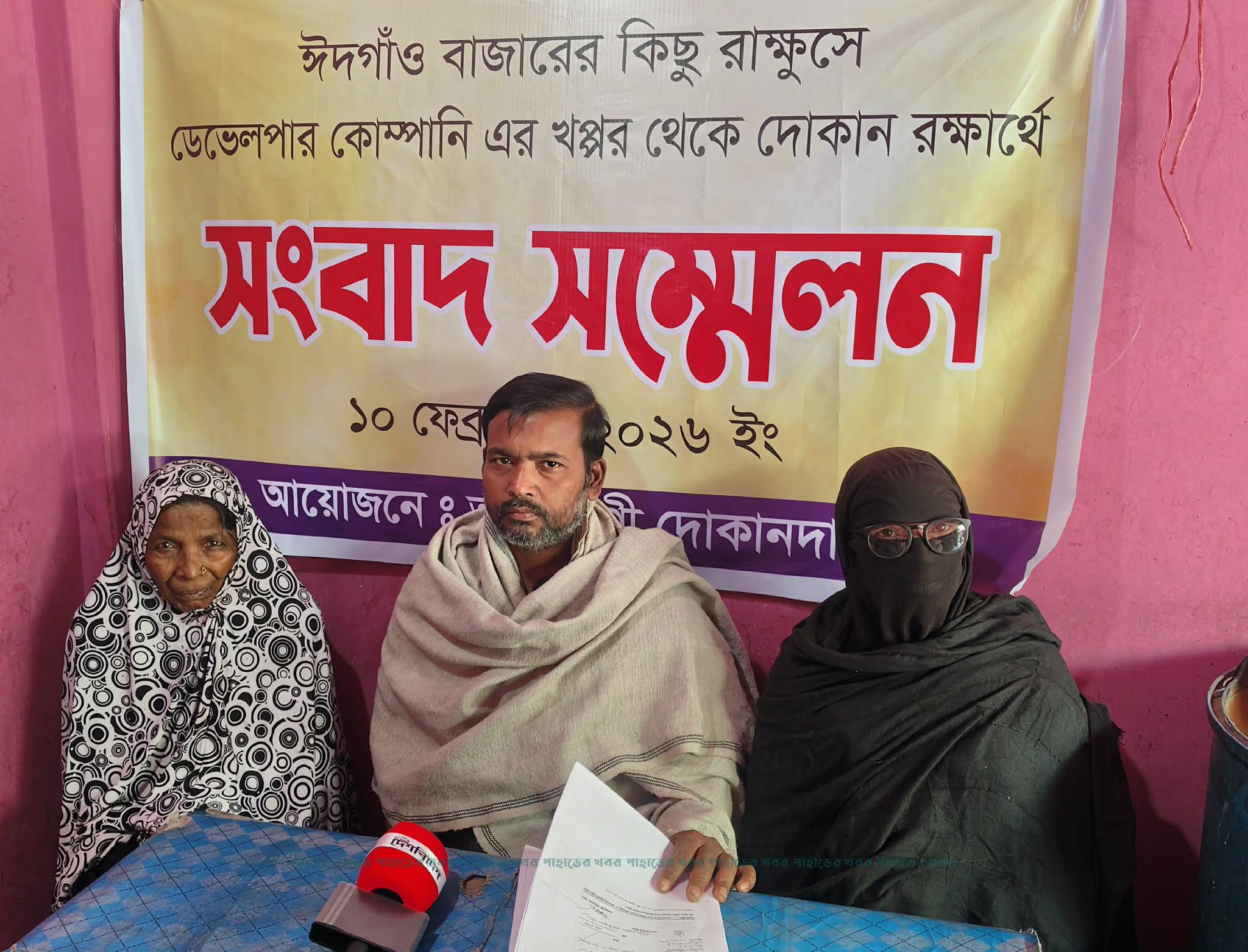 কক্সবাজারের ঈদগাঁও বাজারের রাক্ষুসে ডেভলপার কোম্পানির খপ্পর থেকে দোকান রক্ষায় সংবাদ সম্মেলন করেছে ভুক্তভোগী এক ব্যবসায়ী।