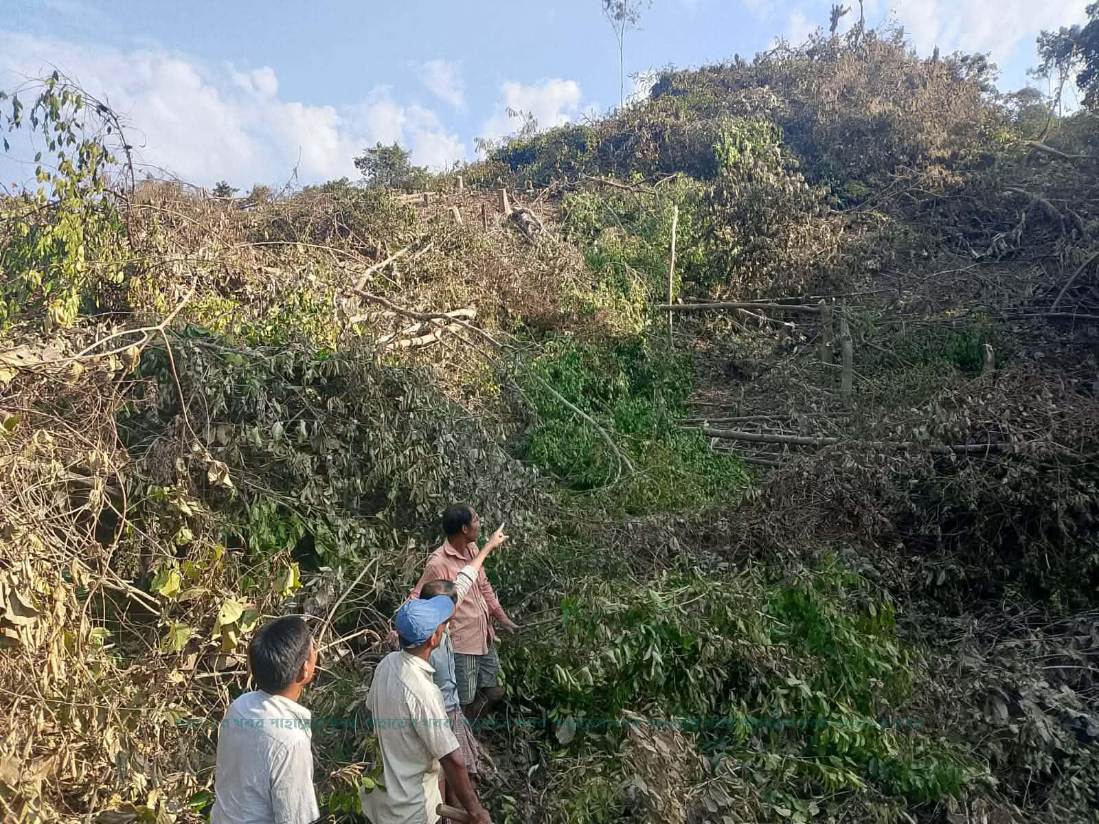 কাপ্তাইয়ে সরকারি আগর বনায়নের গাছ কেটে জায়গা দখলের অভিযোগ