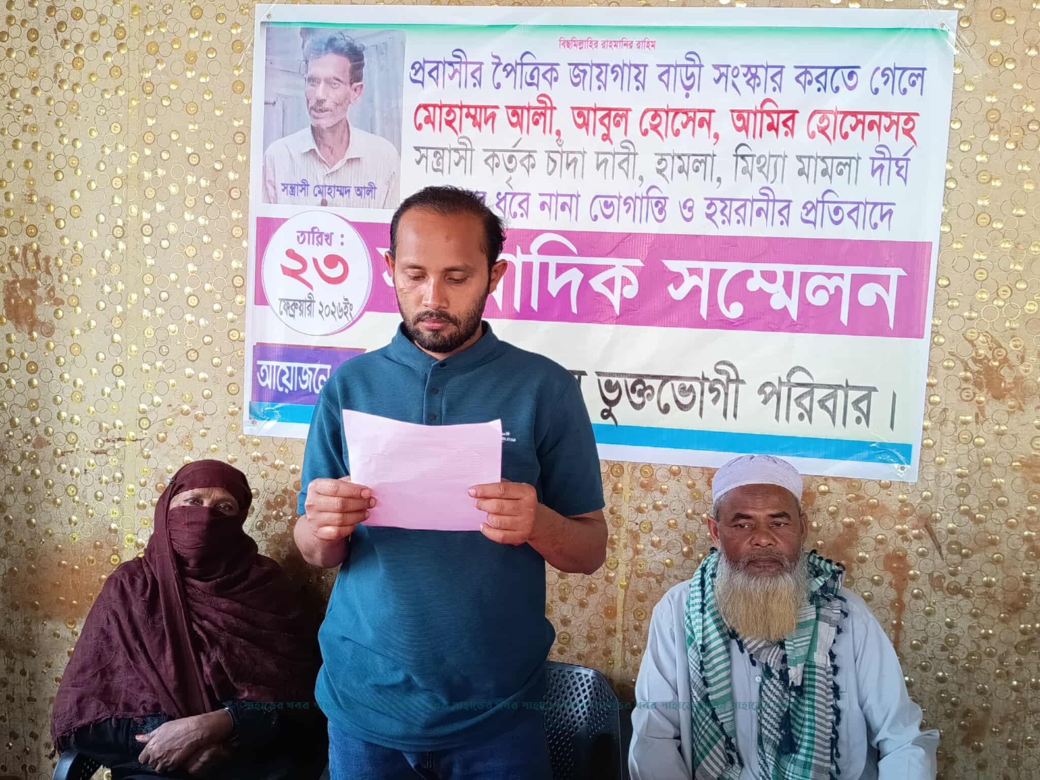 চন্দনাইশে প্রবাসীর বাড়ী সংস্কারে বাঁধা, সন্ত্রাসী হামলাসহ চাঁদাবাজির অভিযোগে সংবাদ সম্মেলন