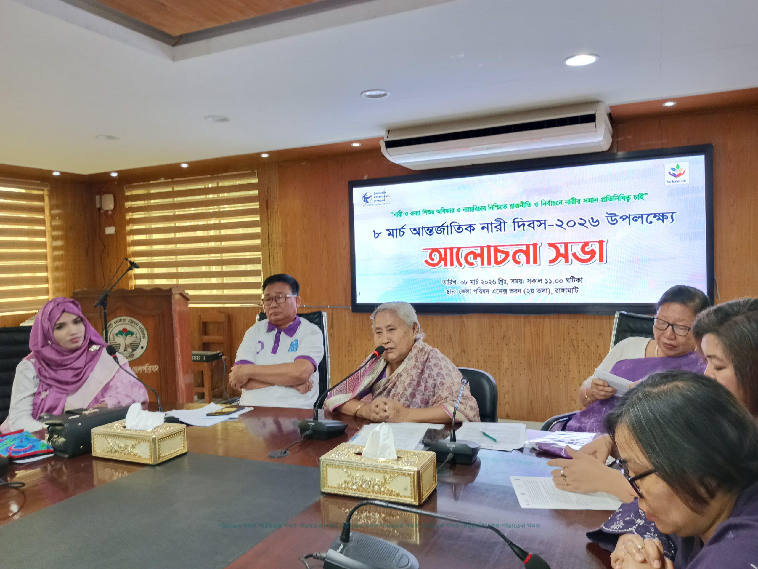 আজ রোববার (৮ মার্চ) সকালে আন্তর্জাতিক নারী দিবস ২০২৬ উপলক্ষে রাঙামাটি জেলা পরিষদ এনেক্স ভবনে আয়োজিত আলোচনা সভায় প্রধান অথিতির বক্তব্যে তিনি এ মন্তব্য করেন। সভার সভাপতিত্ব করেন জেলা পরিষদ সদস্য দেব প্রসাদ দেওয়ান।