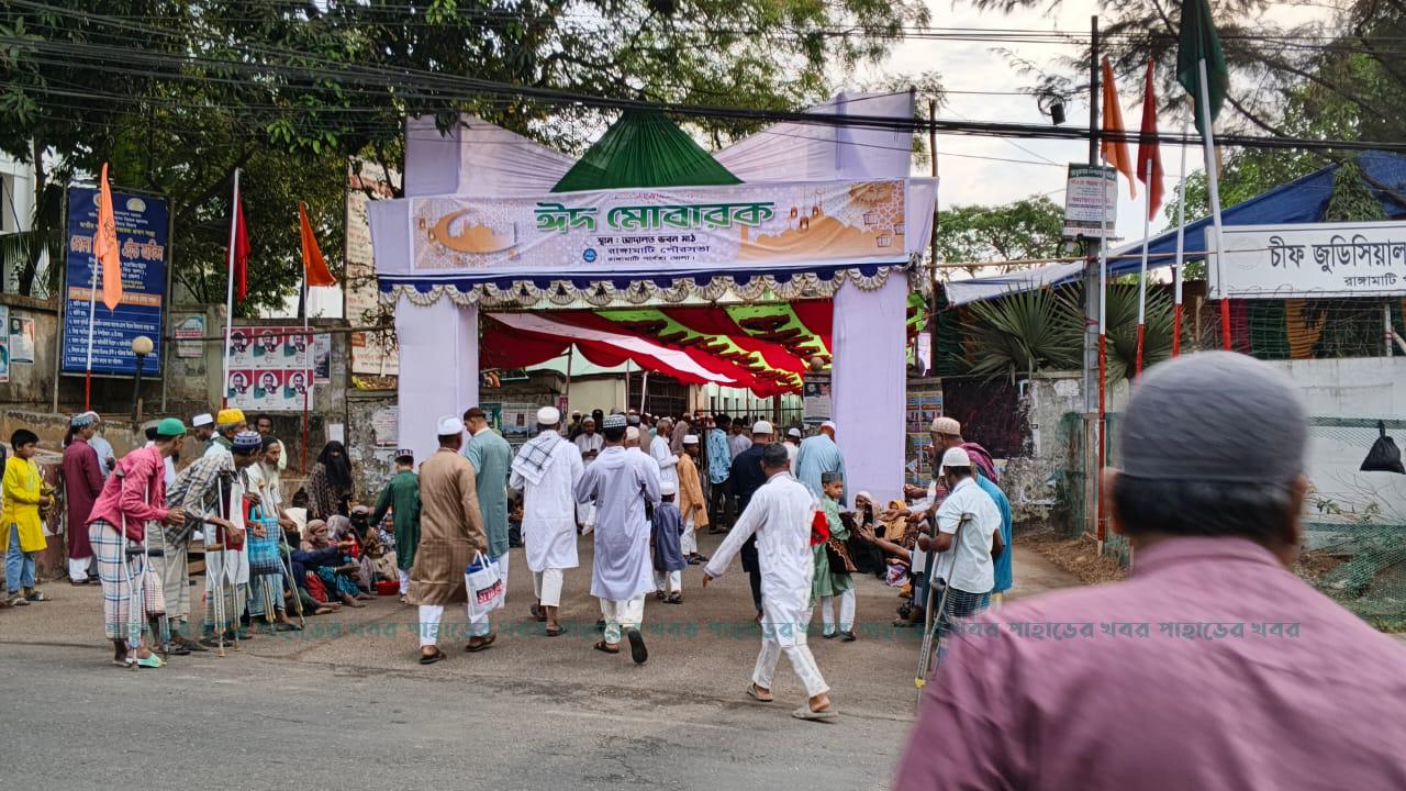 ‎রাঙামাটিতে সকাল পৌনে ৮টায় ঈদুল ফিতরের ঈদের প্রথম জামাত অনুষ্ঠিত হয় শহরের আদালত পাড়া ঈদগাঁ মাঠে। ঈদ জামাত মাঠ পরিচালনা কমিটির পক্ষে সঞ্চালনা করেন, জেলা জামায়াতের আমীর আব্দুল আলিম। জেলা শহরের মধ্যে ১০টি ঈদের জামাত অনুষ্ঠিত হয়। তার মধ্যে সবচেয়ে বড় ঈদের