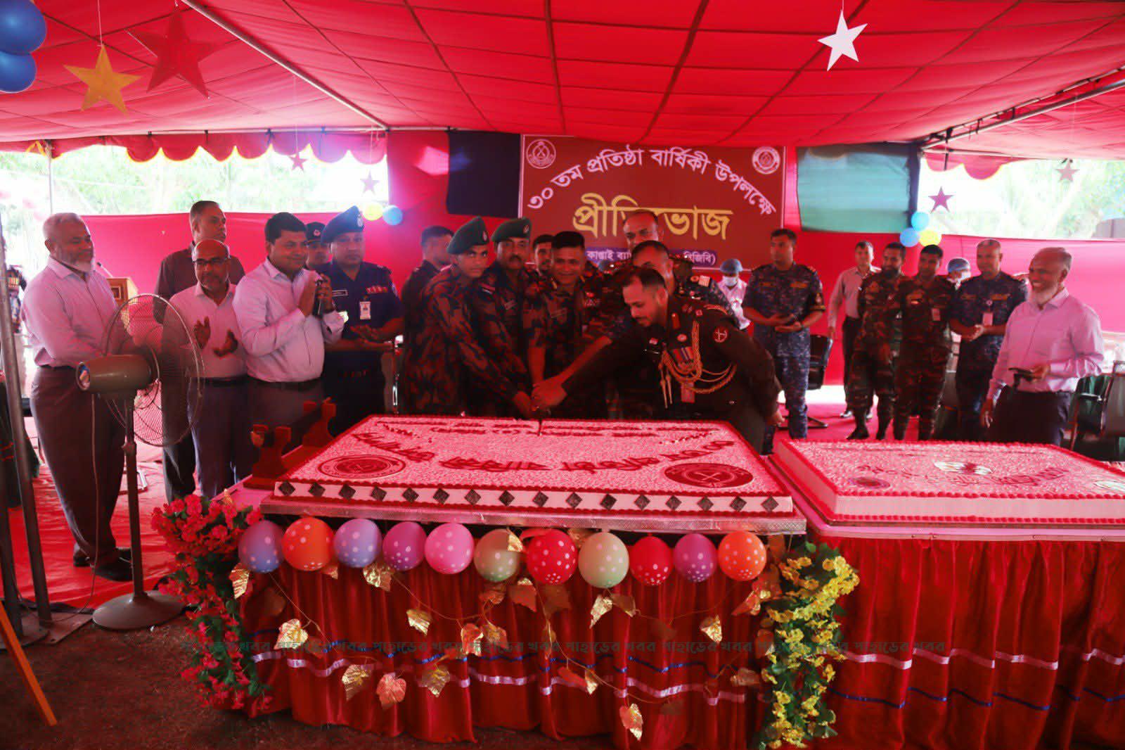 এদিন প্রতিষ্ঠাবার্ষিকী উপলক্ষে দুপুরে কাপ্তাই ব্যাটালিয়ন সদর দপ্তরে প্রীতিভোজের আয়োজন করা হয়। প্রীতিভোজে প্রধান অতিথি হিসেবে উপস্থিত থেকে কেক কাটার মাধ্যমে অনুষ্ঠানের শুভ সুচনা করেন চট্টগ্রাম দক্ষিণ – পূর্ব রিজিয়নের   রিজিয়ন কমান্ডার ব্রিগেডিয়ার জেনারেল সোহেল আহমেদ, পিবিজিএম, পিএসসি। এসময় তিনি বলেন, কাপ্তাই ব্যাটালিয়ন দীর্ঘ ৩০বছর ধরে সীমান্ত রক্ষা, চোরাচালান রোধ এবং দেশের সার্বভৌমত্ব রক্ষায় নিরলসভাবে কাজ করে যাচ্ছে।প্রতিষ্ঠাবার্ষিকীর এই আয়োজন বিজিবি সদস্যদের মনোবল বৃদ্ধি এবং ভ্রাতৃত্ববোধ সুসংহত করতে সহায়ক হবে।