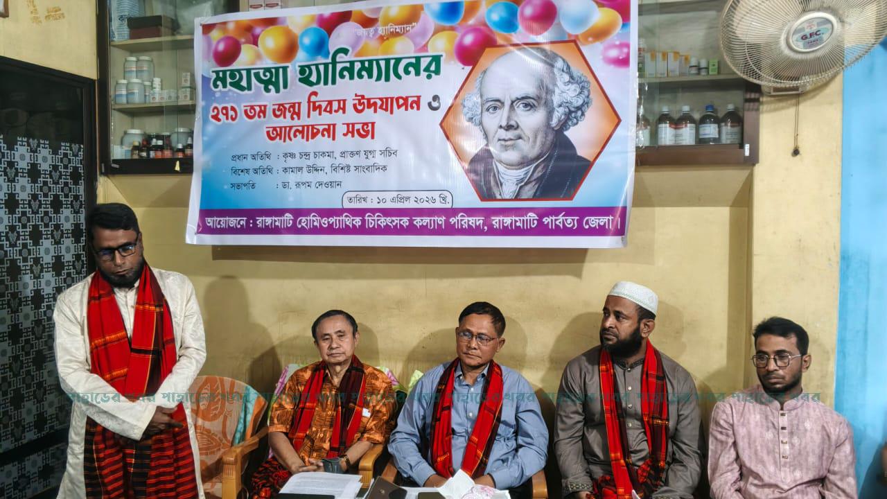 রাঙামাটিতে মহাত্না ও হোমিওপ্যাথিকের জনক জার্মান চিকিৎসক ডঃ স্যামুয়েল হ্যানিম্যানের ২৭১ তম জন্মদিন ও বিশ্ব হোমিওপ্যাথি দিবস উপলক্ষে আলোচনা সভা অনুষ্ঠিত হয়েছে। শুক্রবার বিকালে শহরের বনরুপাস্থ কাটাপাহাড় লেন ডাক্তার রুপম দেওয়ানের চেম্বারে দিবসটি পালিত হয়েছে।