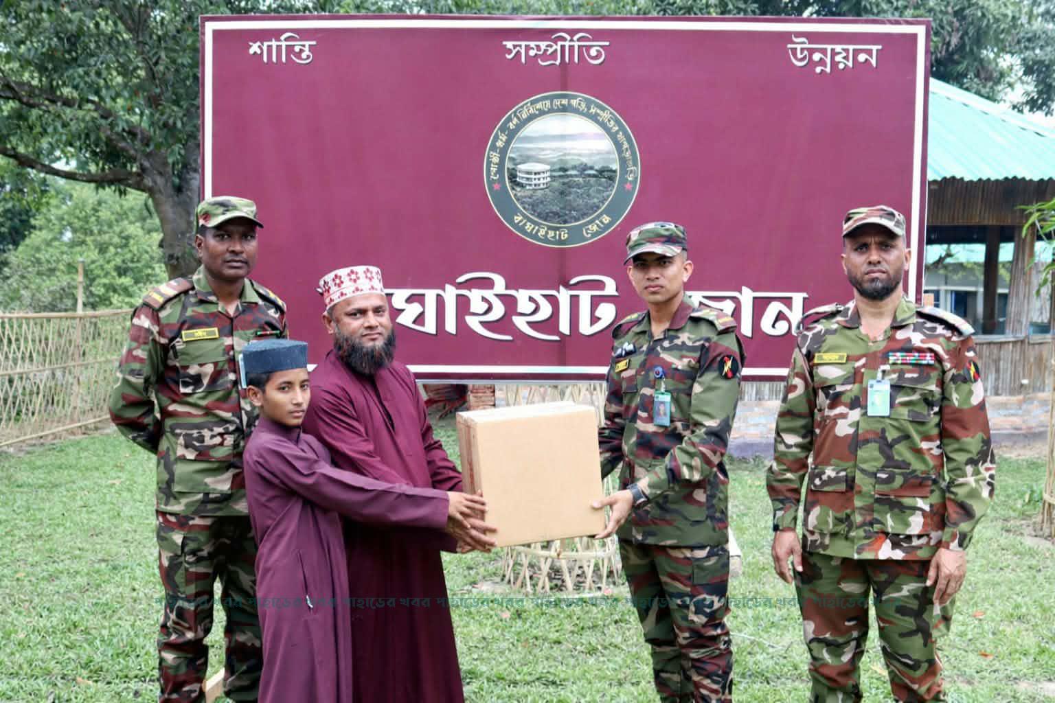 রাঙ্গামাটি জেলার বাঘাইছড়ি উপজেলার ৩৬ নং সাজেক ইউনিয়নের বাঘাইহাট বাজার এলাকায় হুসাইনিয়া এতিমখানায় গরিব দুস্থ শিক্ষার্থী’দের জন্য খাদ্যদ্রব্য প্রদান করেছে খাগড়াছড়ি রিজিয়নের বাঘাইহাট সেনা জোন। আজ সোমবার (১৩ এপ্রিল) সাজেক ইউনিয়ন এর বাঘাইহাট বাজার এলাকায় অবস্থিত হুসাইনিয়া এতিমখানায় গরিব দুস্থ শিক্ষার্থীদের জন্য  বিভিন্ন খাদ্যদ্রব্য সামগ্রী বিতরন করা হয়।