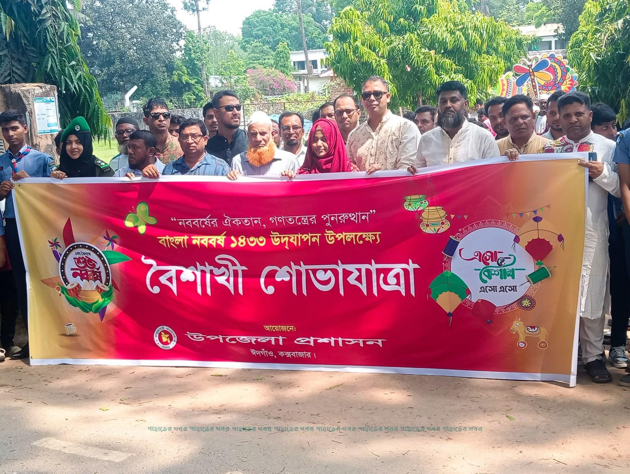 কক্সবাজারের ঈদগাঁওয়ে উপজেলা প্রশাসনের উদ্যোগে বর্ণাঢ্য আয়োজনের মধ্য দিয়ে ১লা বৈশাখ পালিত হয়েছে। নতুন বছরের নতুন দিনে সবার প্রতি শুভ কামনা জানিয়ে সদর উপজেলা সহকারী কমিশনার (ভূমি) শারমিন সোলতানার নেতৃৃত্ব বর্ণাঢ্য রেলি বের করা হয়। র্যালিটি জাহানারা ইসলাম বালিকা উচ্চ বিদ্যালয় মাঠ থেকে শুরু হয়ে উপজেলা প্রশাসনের কার্যালয়ের সামনে এসে শেষ হয়।