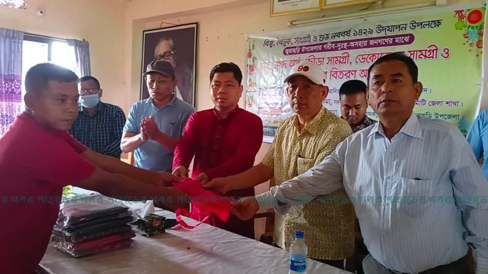 বিজু উপলক্ষে / জুরাছড়িতে জেলা পরিষদের টাকা, বস্ত্র ও ক্রীড়া সামগ্রি বিতরণ