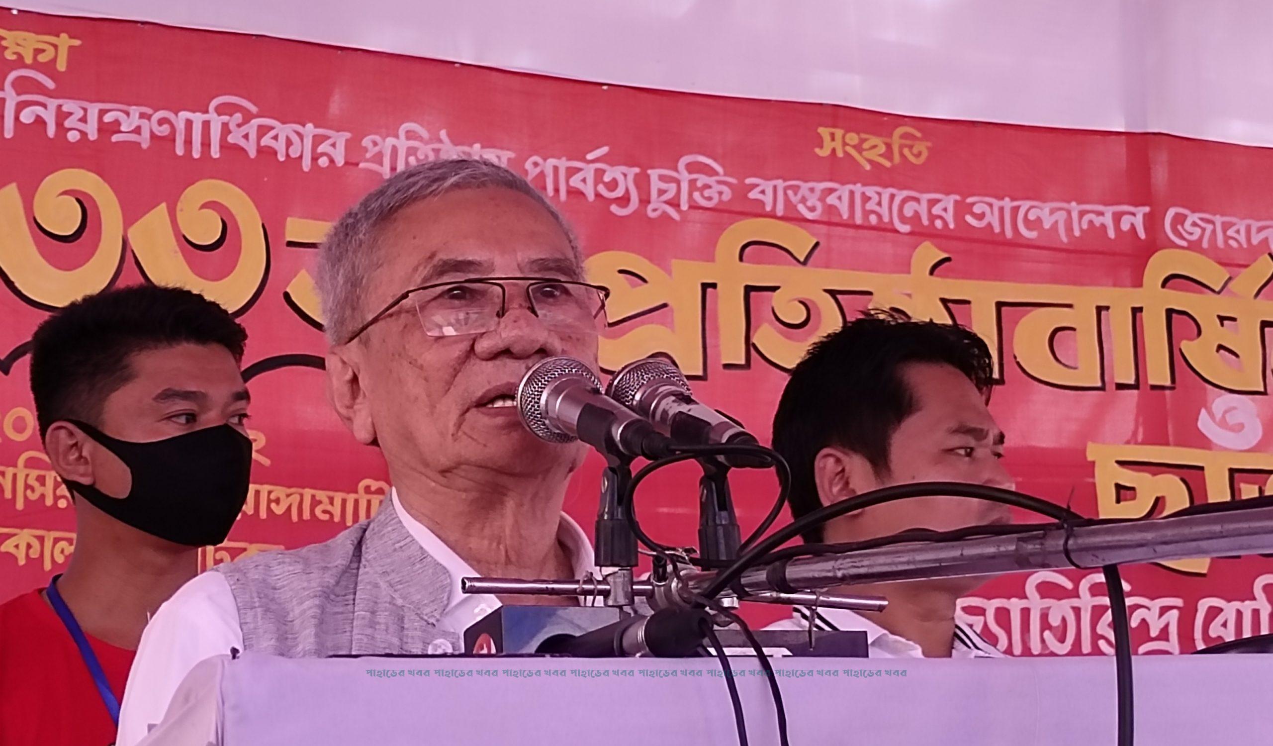 শুক্রবার সকালে রাঙামাটি জিমনেসিয়াম প্রাঙ্গনে পাহাড়ী ছাত্র পরিষদের ৩৩ প্রতিষ্ঠা বার্ষিকী ২৬ তম কেন্দ্রীয় সম্মেলনে প্রধান অতিথির বক্তব্যে এ অভিযোগ করেন সন্তু লারমা।