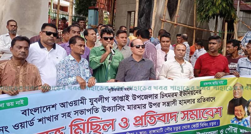কাপ্তাইয়ে যুবলীগ নেতা উক্যাসিং মারমাকে মারধরের প্রতিবাদে রাঙামাটিতে বিক্ষোভ মিছিল ও প্রতিবাদ সমাবেশ করেছে জেলা যুবলীগ।